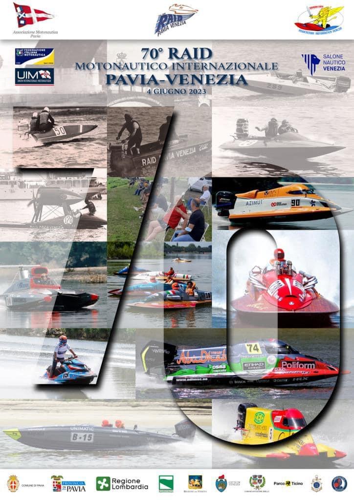 Domenica 04 Giugno 2023 si è corsa la 70^ Edizione della storica gara sul fiume Po. Le pioggie molto frequenti nei giorni antecedenti il Raid han fatto si di avere un fiume bello pieno e alto ma al contempo molto sporco e pieno di detriti portati dalla piena.. Anche per questa edizione la partenza sarà non da Pavia ma più a valle nel paese di San Nazzaro. Da li i piloti entreranno nella conca di Isola Serafini e partiranno per il primo tratto fino a Boretto. Da li ci sarà la seconda tratta unica fino a Voltagrimana dove si fermerà il cronometro e si affronteranno le conche che portano poi a Brondolo dove c’è l’arrivo della corsa. I soli vincitori delle varie classi andranno poi a Venezia presso l’arsenale per la premiazione.